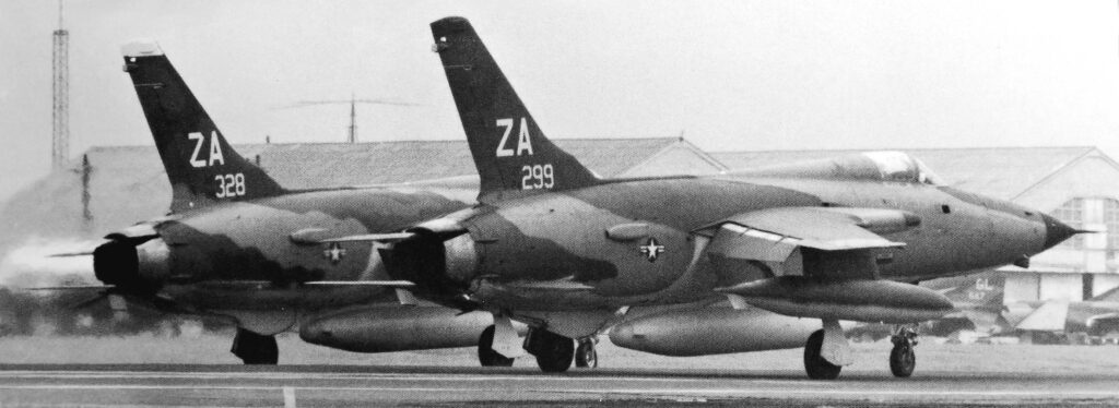 The Thunderchief days in the 12th TFS were numbered as May 1972 approached. However, the 12th went out in style, by finishing #1 at the 5th Air Force Weapons Meet. An apt parting remark from then-Captain Bob Venkus, one of the 12th TFS pilots: ‘Check 12 low for you might catch a glimpse of one of the last Thunderchiefs as it heads for the Guard ramp at a speed just slightly beyond your “Q” limit