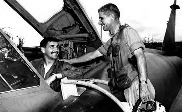 Capt Bob Donaldson flew a complete tour in South-east Asia in 1966-67. One sortie in particular sticks in his memory. ‘My wingman and I were launched from Udorn in northern Thailand to join up with two CH-46 helicopters at the Mekong River just north of Udorn. The mission was briefed to escort and protect the ‘46s’ from MiGs that would probably be in the area of Dien Bien Phu, North Vietnam. Just east of us was Sam Neua, the headquarters for the North Vietnamese forces in northern Laos. The goal of the mission was to place a TACAN [tactical air navigation] station on a flat-topped karst on Black Mountain. It would [be] a very valuable navigational aid for all of our strike forces going into and recovering from North Vietnam.