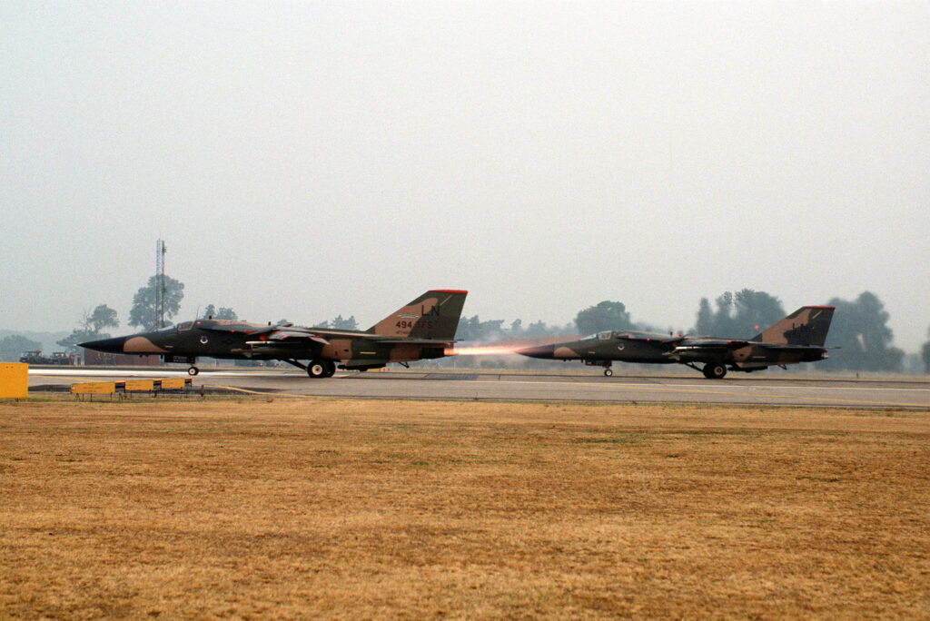 - F‑111F (Lakenheath): TF30‑P‑100 (later P‑109) engines; AN/APQ‑144 attack radar; Pave Tack LGB capability; formed the backbone of precision deep‑strike from the UK in the 1980s.