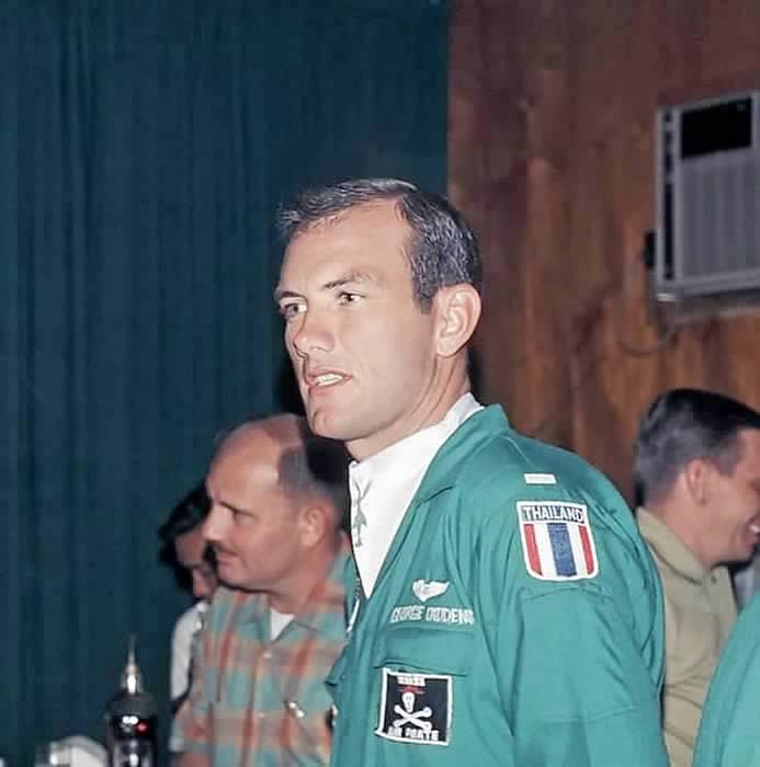 Since I was not crewed with a pilot on a regular basis, I frequently flew with wing staff. Jack O’Donnell the Wing Director of Operations, also a Thud pilot, was not a fan of back seaters and suggested I go cold mic. I did so, monitoring all the things I was supposed to. We were carrying rockets on mission to the PDJ (Plain of Jars area of North Central Laos). Just before rolling in, he casually mentioned over the intercom that he liked to fire rockets to hit within the burn time. While trying to figure that out, I saw a thatched roof on both sides of the limited view forward that I had before he fired and pulled off. Ah, so that is what he meant.