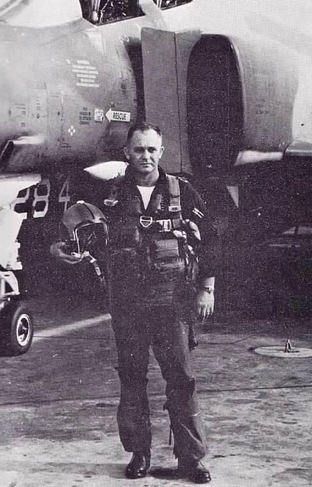 So, after I went Insert, I told Cec he had steering to the bomb release point. The pilot at this point flies the given heading, planned altitude and airspeed and needs to Pickle before reaching the computed bomb release point. The No. 2 aircraft will arm his bombs in direct mode and Pickle when he sees the bombs falling off the lead aircraft. Everything was looking OK and we were still some distance from bomb range but I told Cec to go ahead and Pickle. Just as I said Pickle there was a loud bang and bright light from our 10:00 o’clock position. My first reaction was a bomb had exploded but in a second I knew we were still alive. Then, almost immediately, Cec started hollering, “Take the Airplane”, then asking do you have an attitude indicator? I took the stick and immediately understood the lightning fried the radar and INS and therefore his attitude indicator was tumbling. I told Cec to reach up and select standby on his ADI and it should be OK. Somewhere in there Rick called lost wingman, meaning they could no longer see our plane, and reported they were all right. Our run-in heading was easterly toward the North Vietnam border, so I turned to the west. Shortly after that Invert (Airborne Radar Control) called and said we were in North Vietnam. That’s when I got the hint to look at the whiskey standby compass and it read North. (As a frame of reference by flying North the NVA border angles from about the 4:00 to 10:00 clock position). With another a-ha moment I told Cec to reach over to the right console and re-sync the compass and Cec took the aircraft back. Heading west now, but the fun was not over.